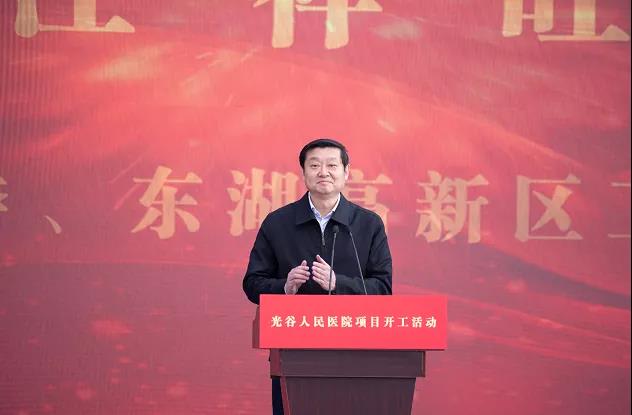 汪祥旺致辞祝贺光谷人民医院开工建设。他表示,今年以来,在省、市的坚强领导、社会各界特别是包括中南医院、省联投等单位的支持帮助下,东湖高新区迈进了高质量发展的快车道,“科技创新、产业发展、产城融合”三篇文章共谱华章,“创新、富强、美丽”3个光谷的建设齐头并进。省联投是科技创新的引领者、产业发展的推动者、城市更新的建设者,理念创新、运营规范、实力雄厚,为花山新城的开发、建设做出了巨大贡献。光谷人民医院今天开工建设,是光谷医疗卫生事业具有里程碑意义的一件大事,也是推动产城融合发展的重要举措,将大大改善花山新城区域内的民生基础设施,也让光谷发展的增量转换为老百姓幸福生活的质量。