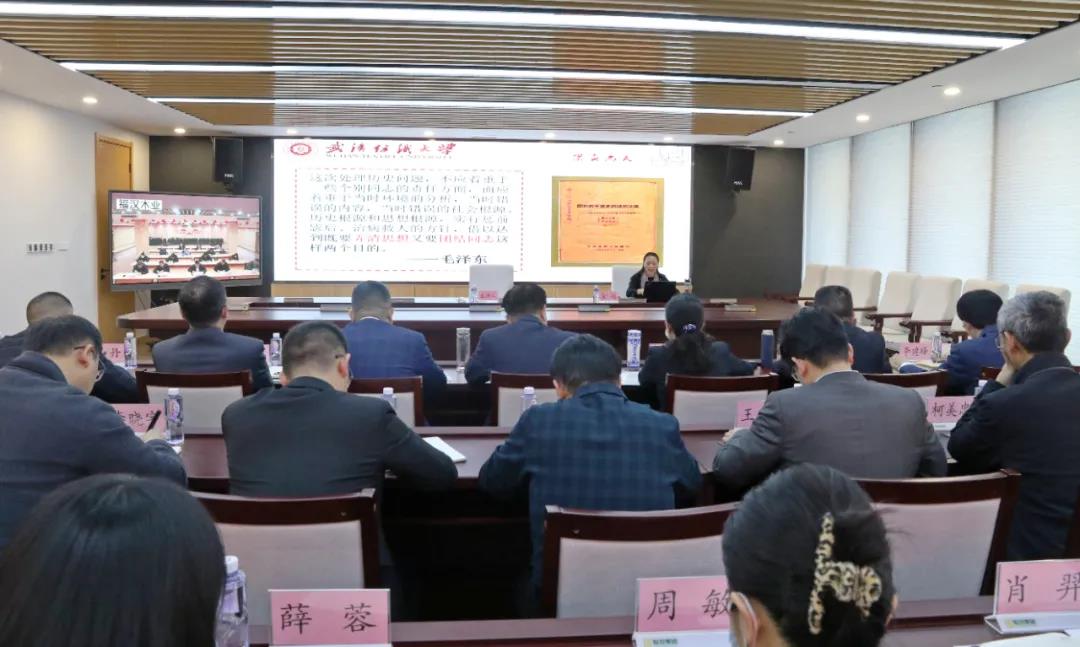 12月20日下午,根据湖北省委统一部署,学习贯彻党的十九届六中全会精神省委宣讲团走进联投集团。湖北省委宣讲团成员、武汉纺织大学党委常委、组织部部长、马克思主义学院院长金艳作专题辅导报告,集团党委书记、董事长刘俊刚主持报告会并讲话。