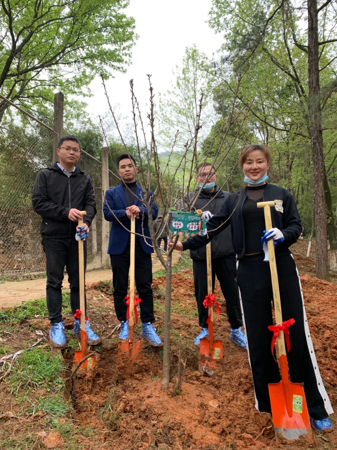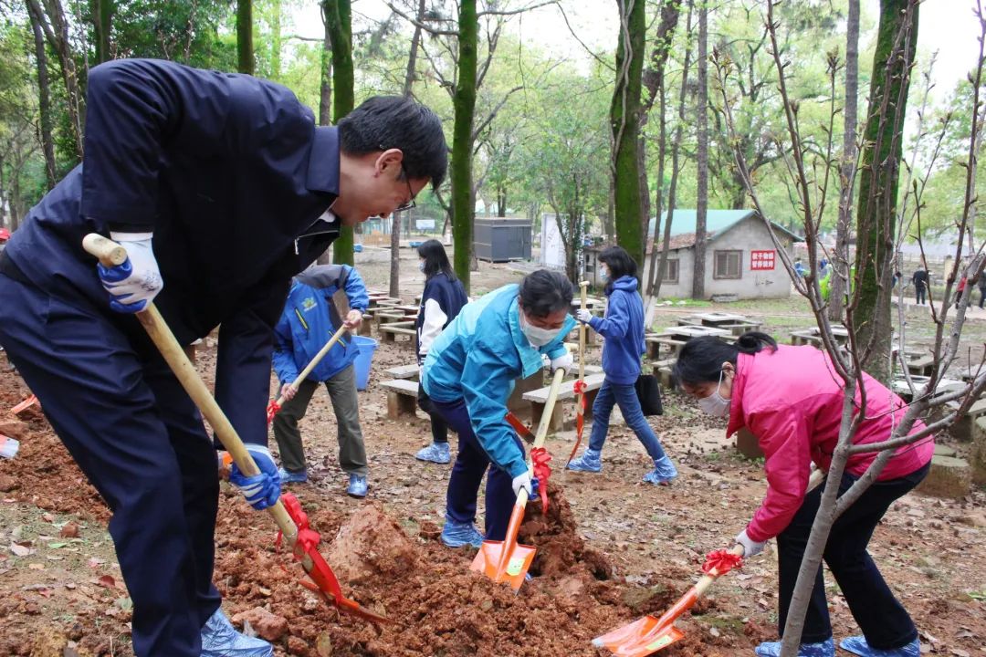 一场春雨后,植树正当时!3月18日下午,九峰森林动物园虎苑边的山坡上泥土变得松软了许多。省国资委党建工作处副处长张辉、宣传处副处长陈颖,湖北联投党委副书记张艳、党群工作部负责人周卫民、副部长宋黎,联投新城集团负责人和50多名来自湖北联投本部、联投新城集团及下属花山新城公司、联林公司的干部职工们一起在这里挥锹铲土,将40多棵山樱花树苗种植下来。