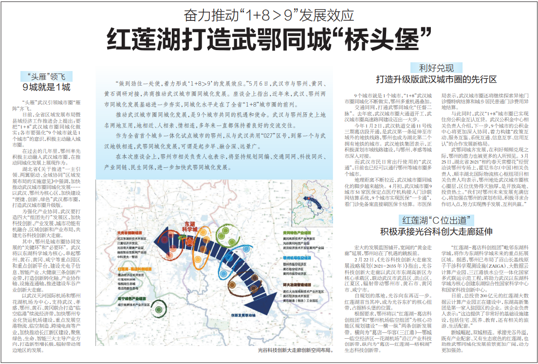 长江日报:奋力推动“1+8>9”发展效应 红莲湖打造武鄂同城“桥头堡”